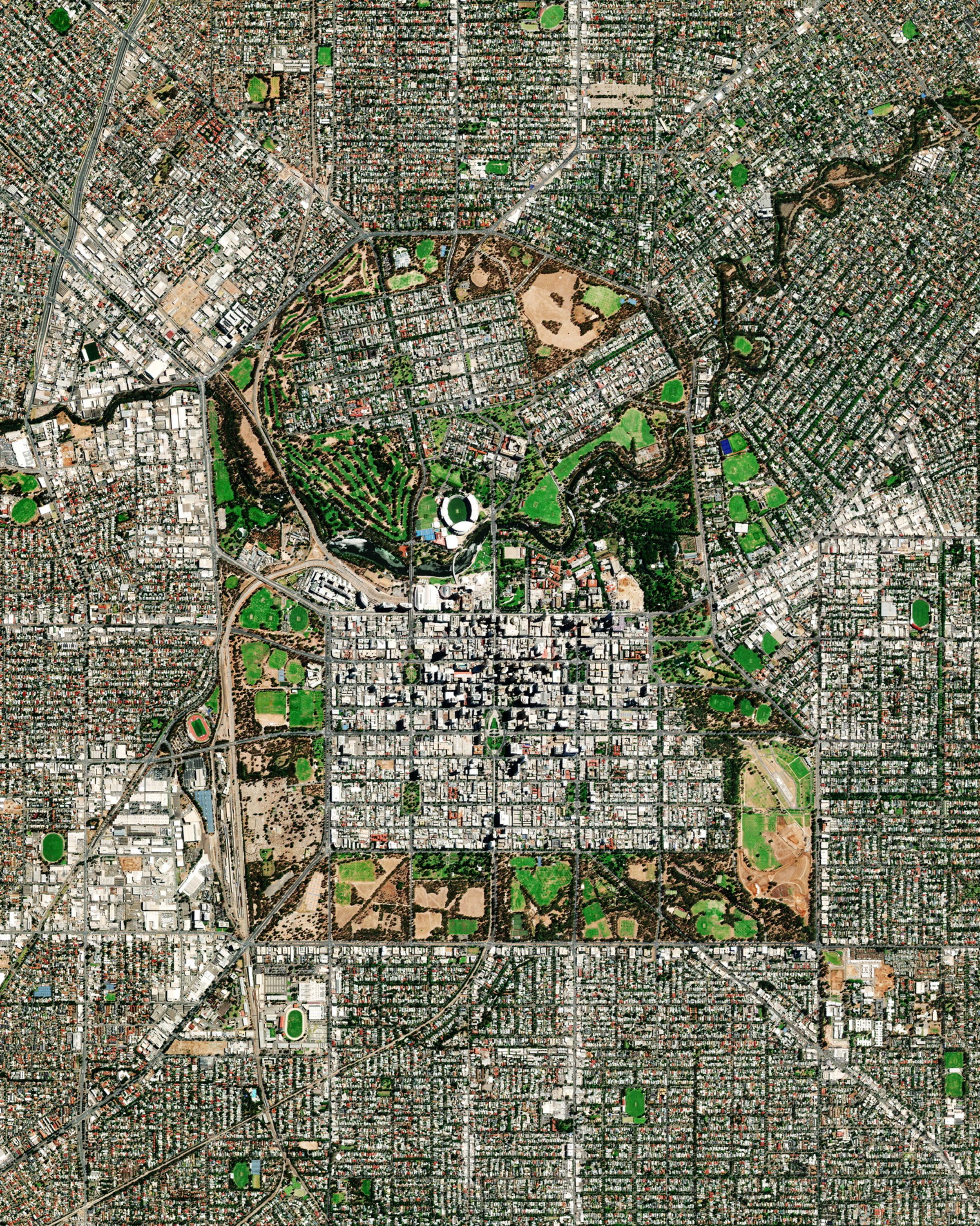 Adelaide is the capital and largest city of South Australia, with around 1.4 million inhabitants. Founded in 1836 as a planned capital, its design features a city center in a grid layout, interspaced by wide boulevards and large public squares, and entirely surrounded by parklands. The River Torrens can be seen flowing through the middle of the city in the Overview.