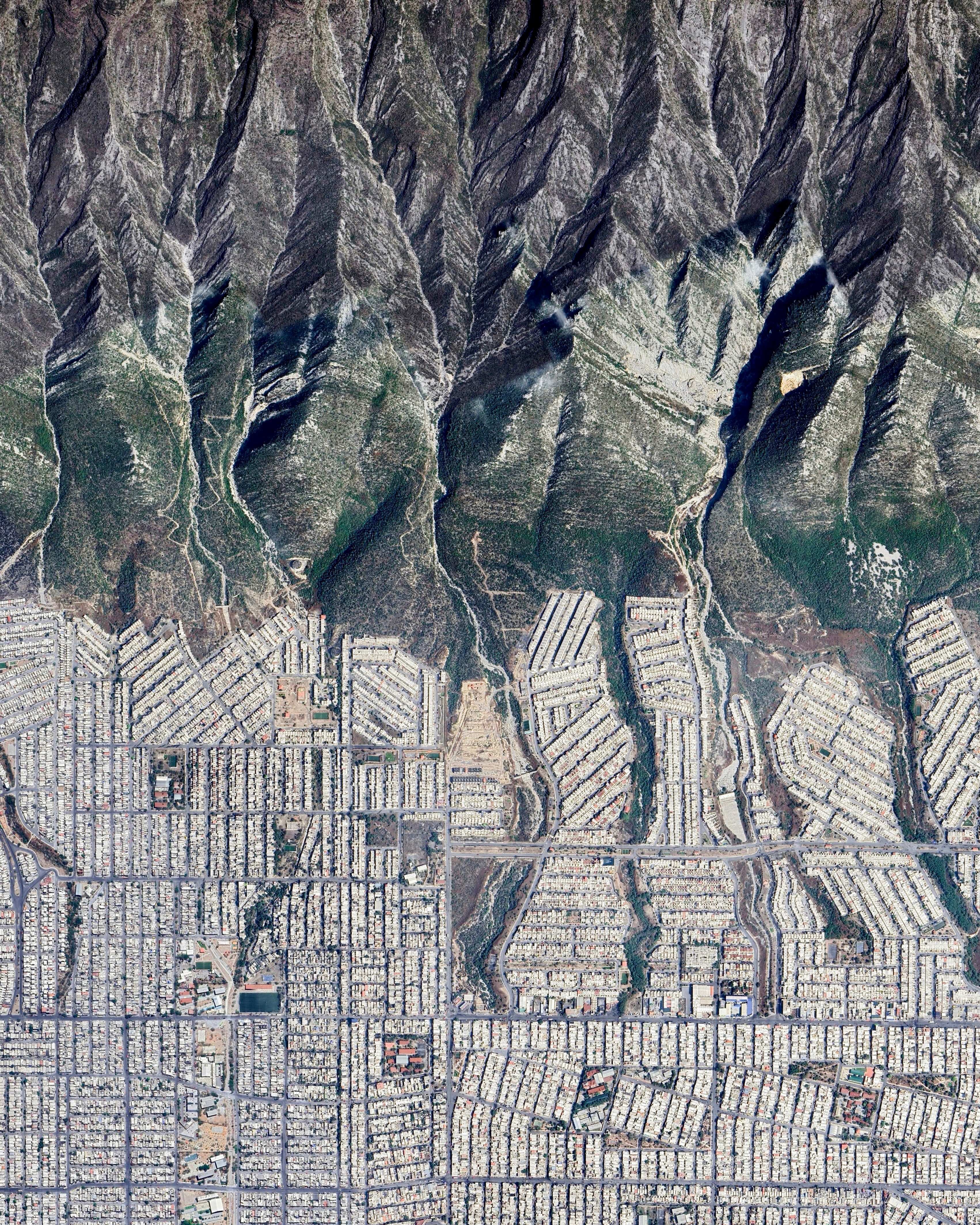 Monterrey is one of the largest and fastest-growing cities in Mexico, with more than 5.3 million residents. Its population has more than doubled in the last 40 years, causing the city to sprawl alongside and outward from the rugged, folding mountain ranges of adjacent Cumbres de Monterrey National Park.