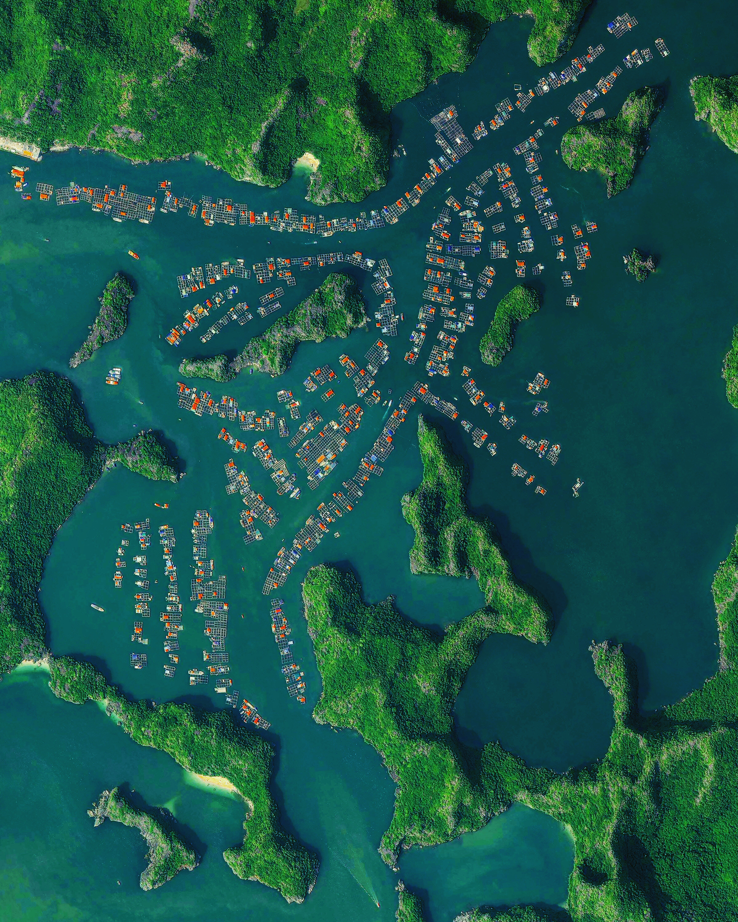 The Cát Bà Archipelago in northern Vietnam is made up of 367 islands that span 100 square miles (260 sq. km) in the southeastern edge of Lan Ha Bay. The largest island — also called Cát Bà — has roughly 13,000 inhabitants, with an additional 4,000 people living on floating fishing villages off the coast as seen here. The island is the adventure-tourism capital of Vietnam, with places to mountain bike, rock climb, hike, and more.