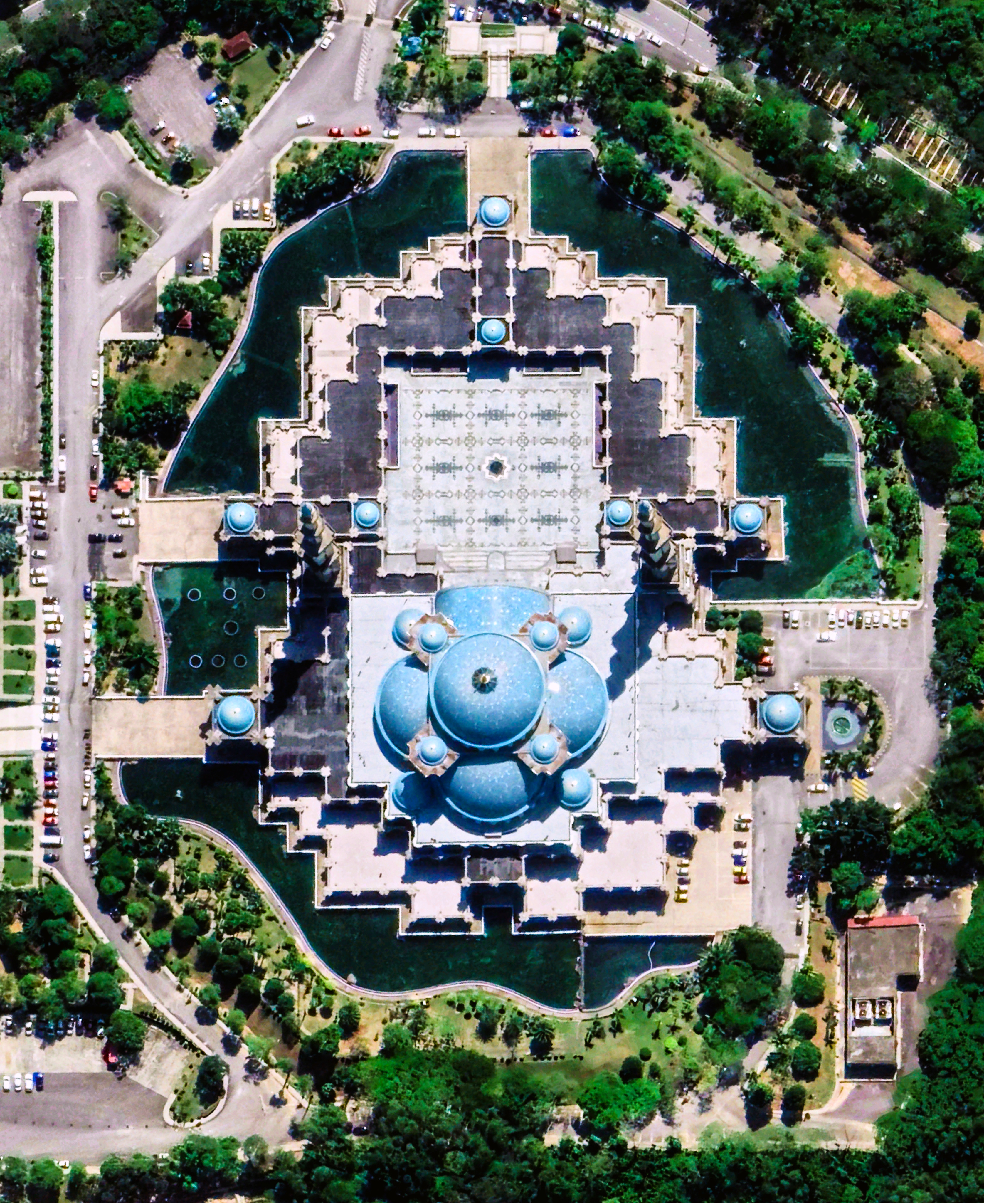 Masjid Wilayah Persekutuan, also known as the Federal Territory Mosque, is a prominent Islamic landmark in Kuala Lumpur, Malaysia. Constructed between 1998 and 2000, it features a main dome that spans about 60 feet (18 meters) in diameter, surrounded by four smaller domes, each with a unique design and style. The mosque's minaret, at 380 feet (116 meters), is one of the tallest in Southeast Asia.