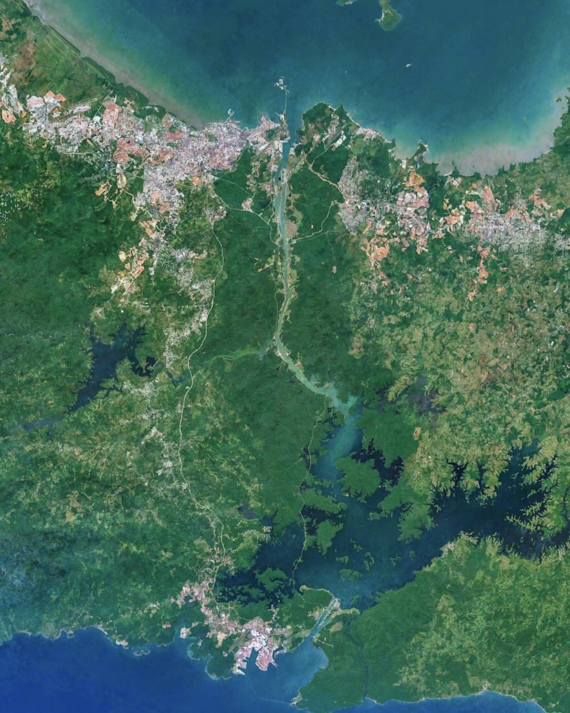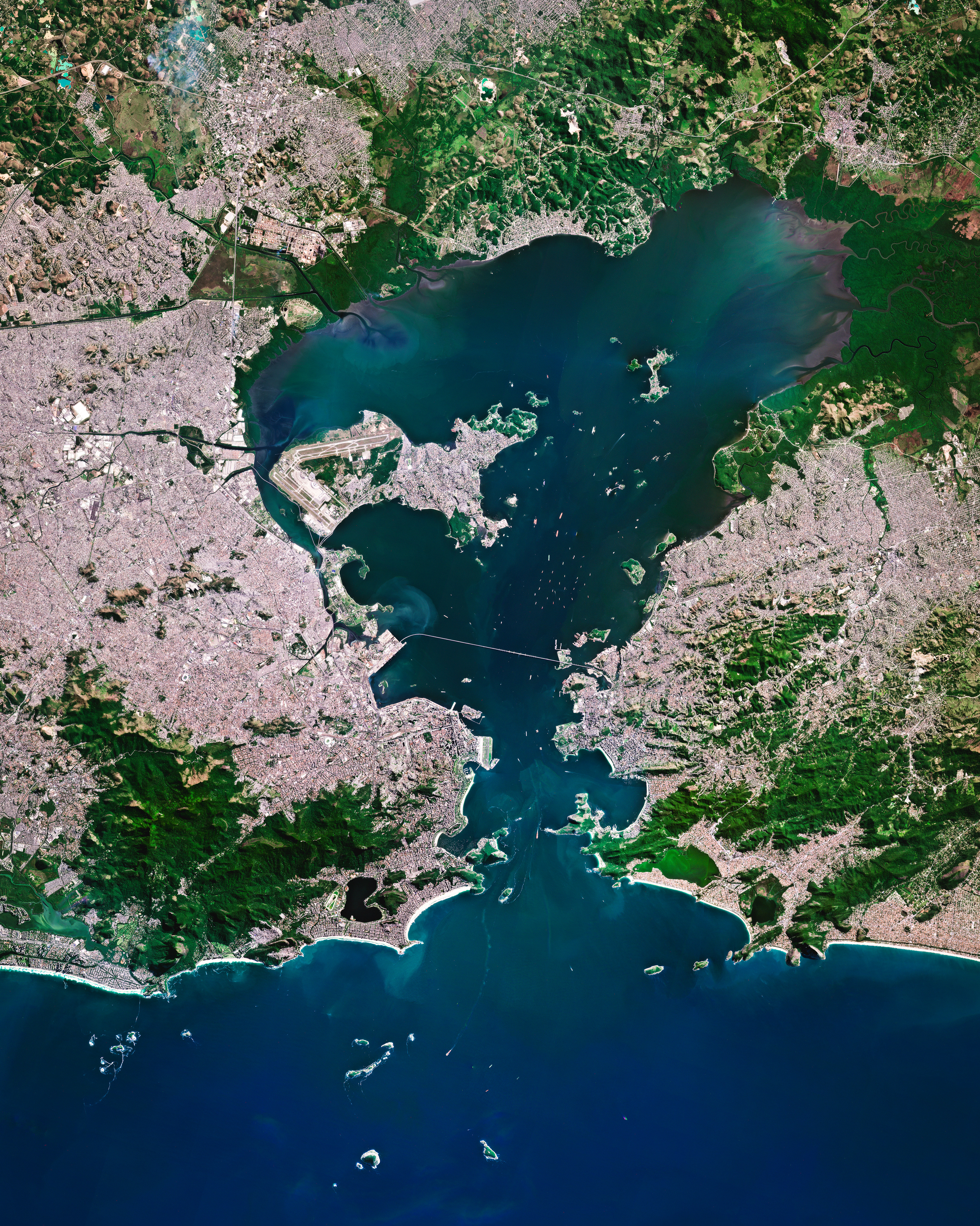Stretching along the southeastern coast of Brazil, Greater Rio de Janeiro is one of the most populous regions in the country, with a population of over 12 million people. The city of Rio de Janeiro itself is the second-largest in Brazil, and is famous for its beaches, samba music, and Carnival celebrations. From this perspective, we see Guanabara Bay, a natural harbor that serves as a vital transportation hub and a popular spot for water sports.