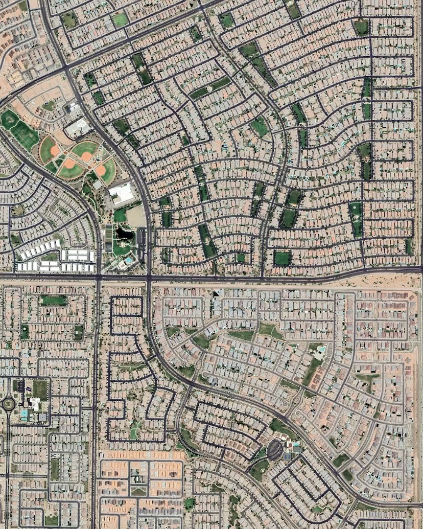 The population of Mesa, Arizona has grown 26.4% since 2000, faster than a majority of similarly sized U.S. cities in that time. This Overview shows newly constructed houses in Eastmark, a residential community on the eastern fringe of the city. Mesa is part of the Phoenix Metropolitan Area, one of the fastest-growing metro areas in the nation fueled by immigration, retirees, and the arrival of tech companies and new job opportunities.