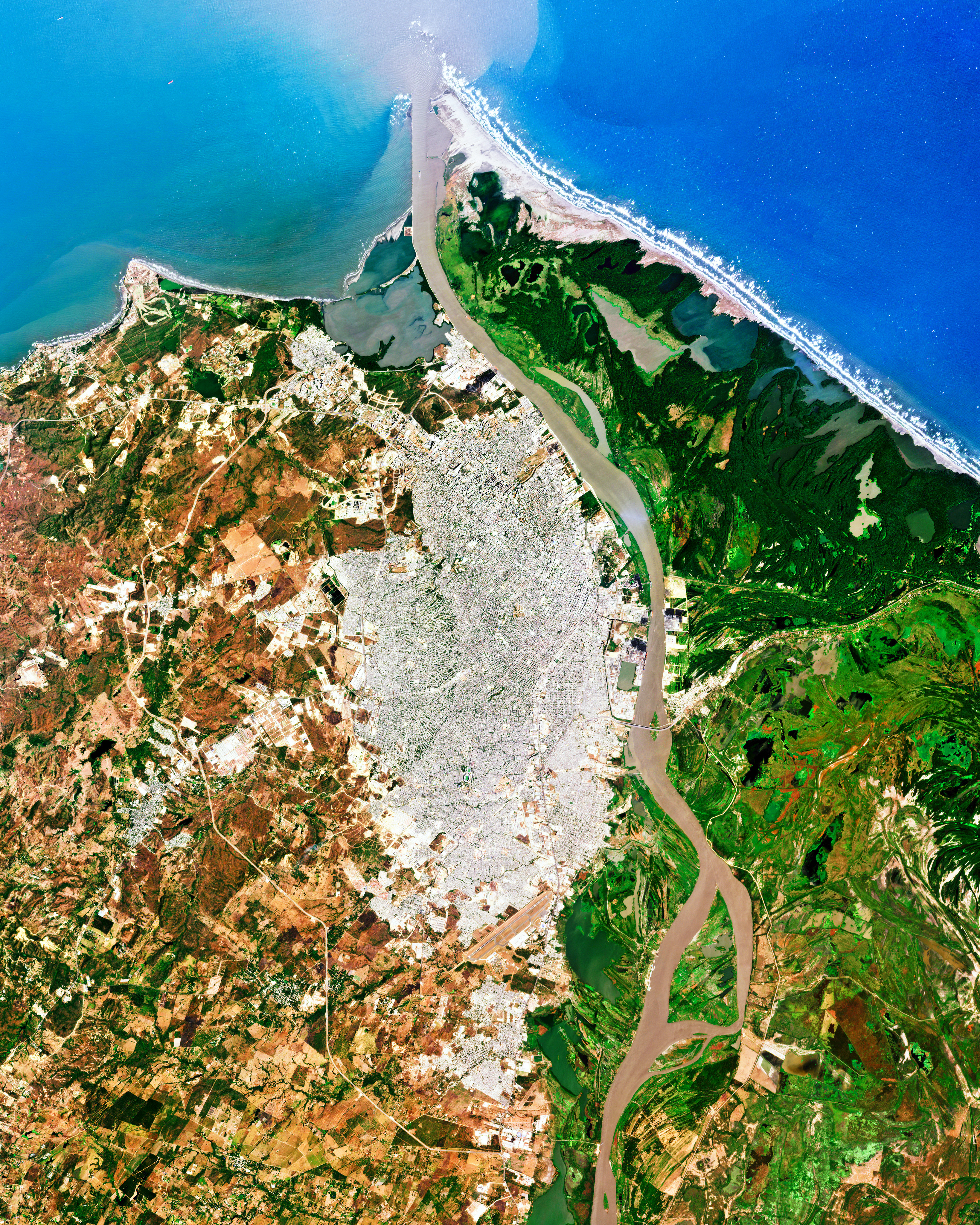 Barranquilla is a city in northern Colombia, located on the Caribbean Sea next to the Magdalena River. With had a population of about 2.2 million, it is Colombia's fourth-most populous city after Bogotá, Medellín, and Cali. This Overview also shows the city of Soledad, which borders Barranquilla to the south and is part of its metropolitan area.
